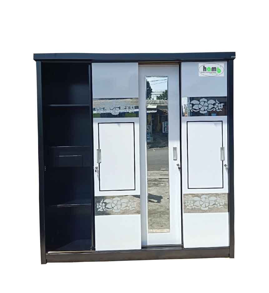 . Size: 208x55x210 . . Sistem Knockdown Total / Bongkar Pasang . Bahan: . Polywood Tebal 12mm Mix 15mm . Finishing Duco . Rell Sliding Almunium . Kunci dari @hubenfurniturefittings